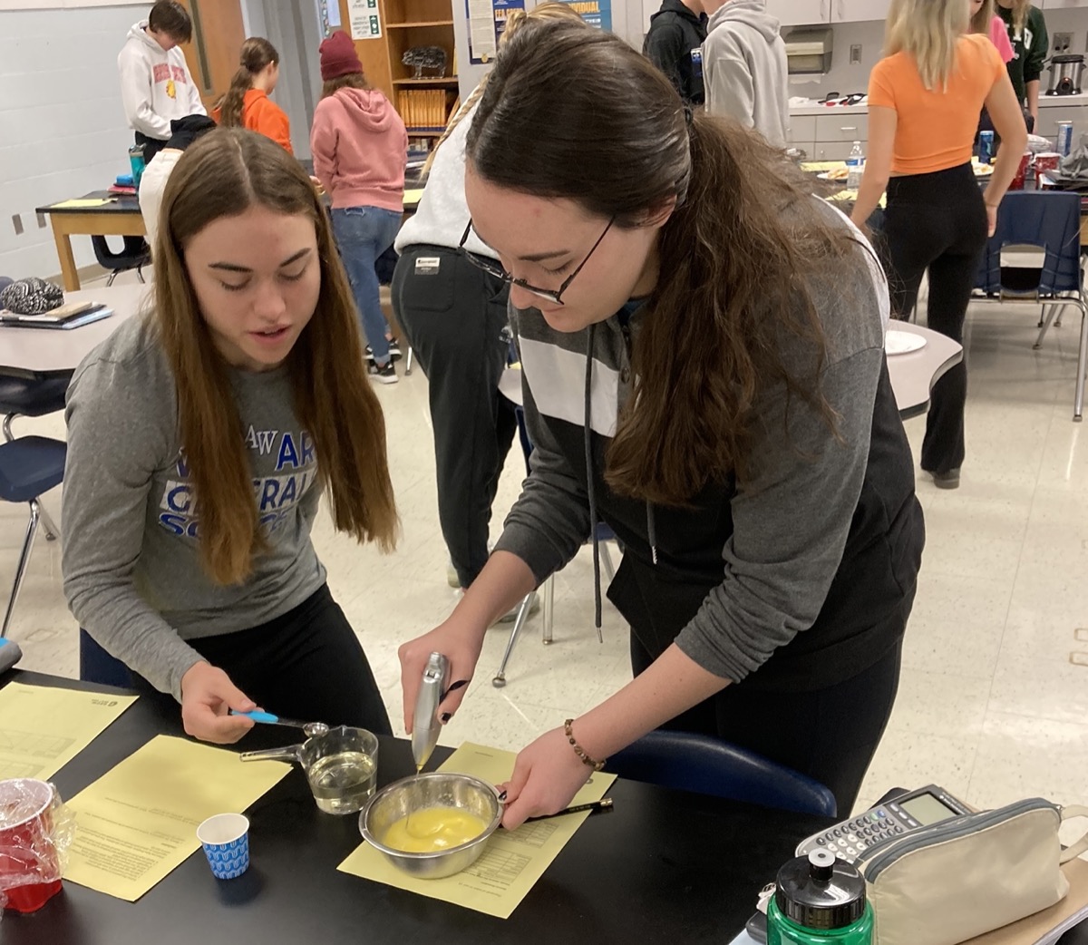 "On the second day, students used a deep fryer and fried some of each in both conventional soybean oil and Plenish oil. Next, they completed a sensory evaluation of each of the four samples. While waiting for the fryers, students worked in their groups to also complete the emulsions lab. Students mixed their ingredients to make mayo and then were able to taste it using their leftover chips.