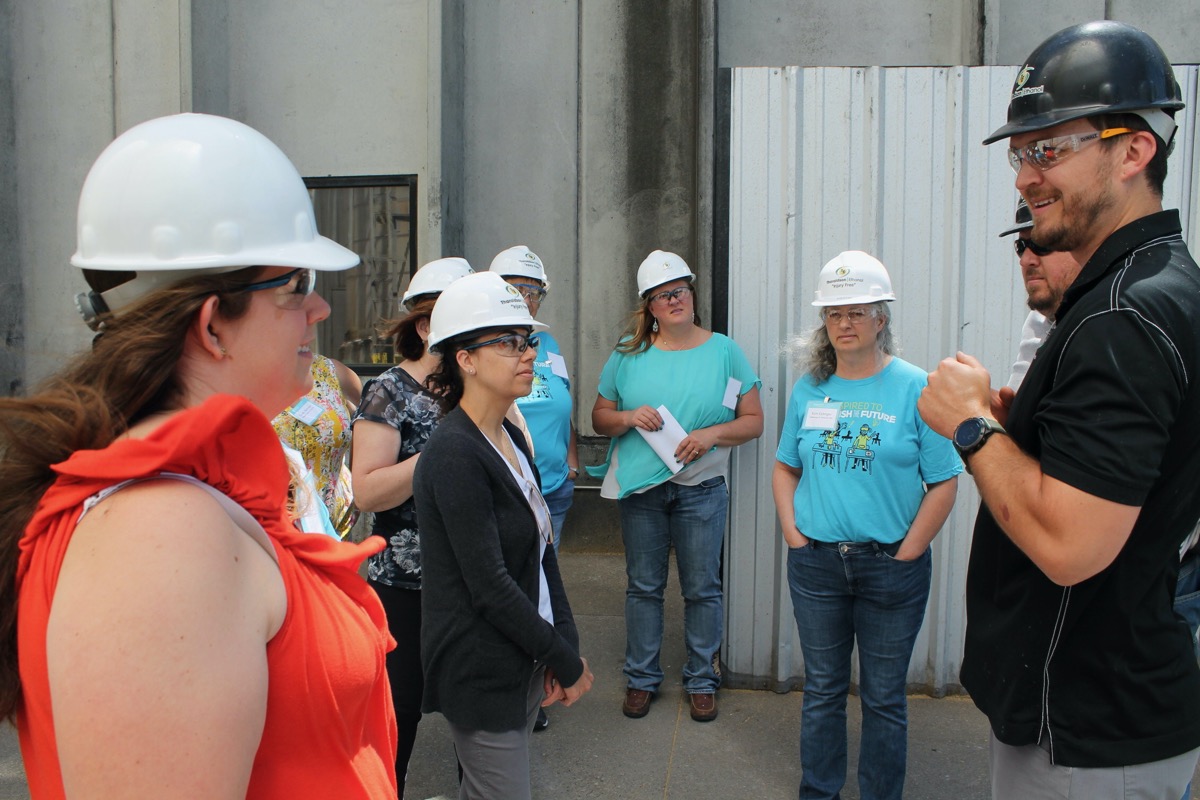 A field trip to Tharaldson Ethanol gave teachers a better understanding of ethanol production. The group saw the lab, then got a look at the operations. Lab manager Kip Stevens led the tour, talking about the production process and the amount of ethanol produced every day, as well as the co-products, dried distillers grain and corn oil.