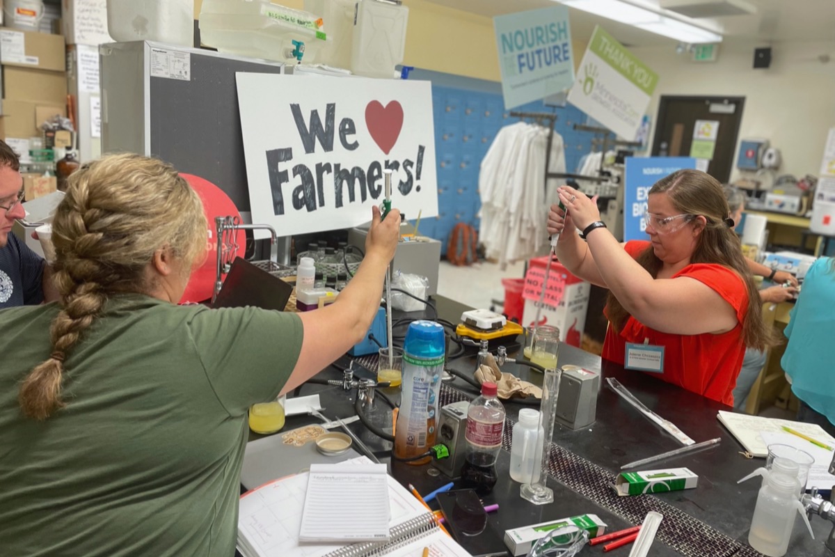 Teachers from several states recently participated in a great workshop: Exploring Biotech and Biofuels, a Nourish the Future Ag Biotech workshop presented by educationprojects.org. This workshop was held at North Dakota State University and sponsored by the North Dakota Soybean Council, with contributions from the Minnesota Corn Growers Association.